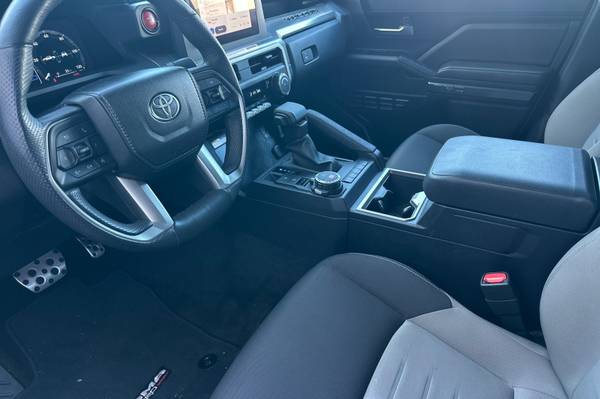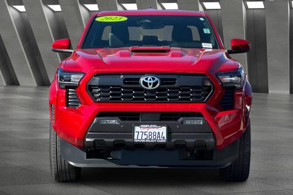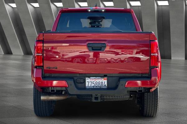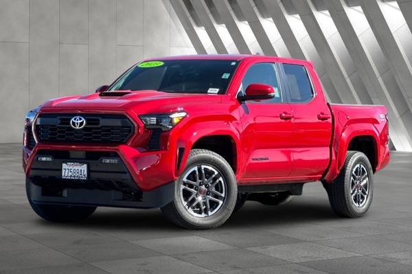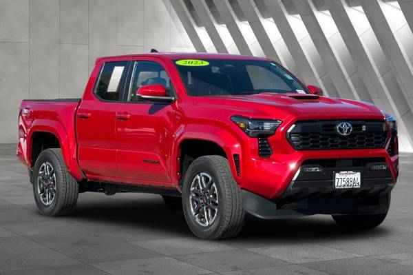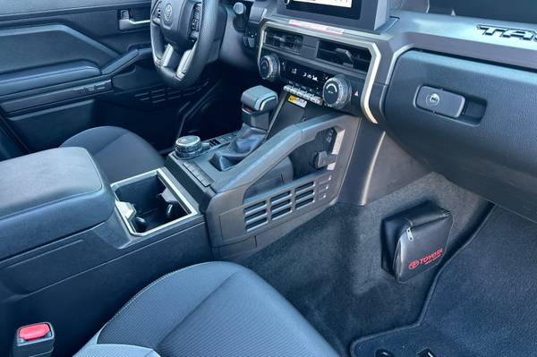 Accessories F FE 50 State Emissions F PC Premium Paint F PU TRD Sport Upgrade Package (4WD, 5ft Bed) - includes 8-way power-adjustable front seats, leather-trimmed heated steering wheel, JBL(R) Premium Audio with JBL(R) FLEX portable speaker, pre-wired auxiliary switches, AC power inverter, Integrated Trailer Brake Controller (ITBC), and power horizontal rear window MECHANICAL & PERFORMANCE i-FORCE 2.4L 4cyl Turbocharged Engine 8-Spd Automatic Transmission 4WDemand: Part-Time 4x4 Sys w/2-Speed Electronically Controlled Transfer Case Coil spring multi-link rear suspension Tow Hitch Reciever SAFETY & CONVENIENCE Toyota Safety Sense 3.0 w/Pre-Collision Star Safety System Connected Services Capable. 4G network dependent. See Toyota.com for details. Blind Spot Monitor (BSM) w/ Rear Cross-Traffic Alert (RCTA) EXTERIOR 18-in Machined Alloy Wheels Smart Key System on D P Doors LED Headlights w/ DRL and Fog Lights INTERIOR Fabric-Trimmed Seats w/ Driver Lumbar Support Leather-trimmed steering wheel 8-in Toyota Audio Multimedia w/ 6-Speakers, Wireless Apple CarPlay and Android Auto Compatibility SiriusXM w/3-Month Trial, 4D Double Cab, 2.4L 4-Cylinder, 8-Speed Automatic, 4WD, Supersonic Red, Boulder/Black, ABS brakes, Alloy wheels, Electronic Stability Control, Heated door mirrors, Illuminated entry, Low tire pressure warning, Remote keyless entry, Traction control.