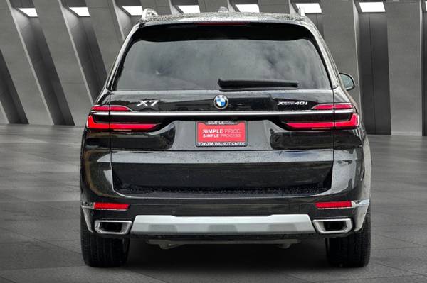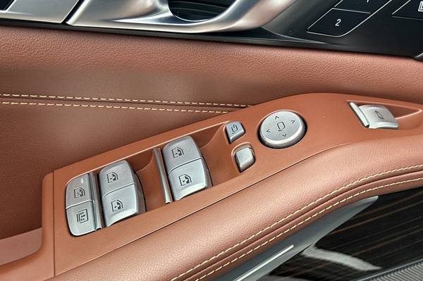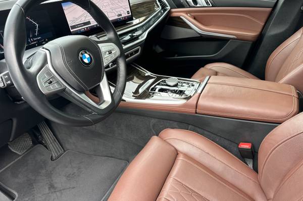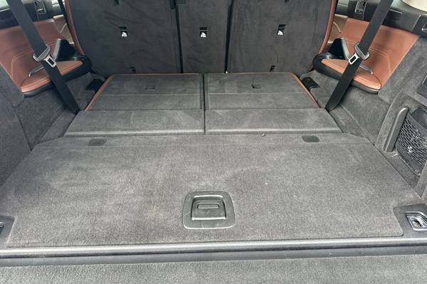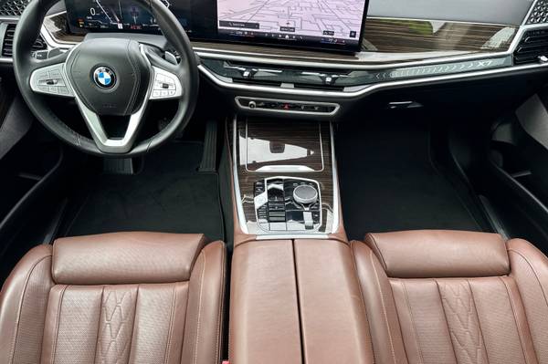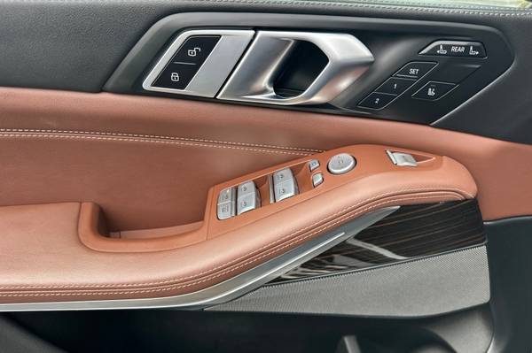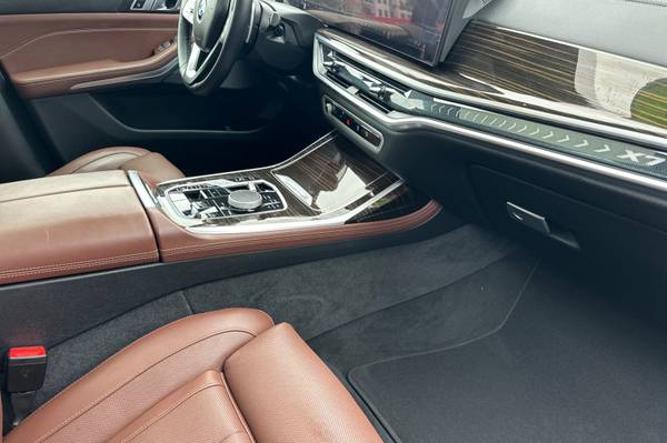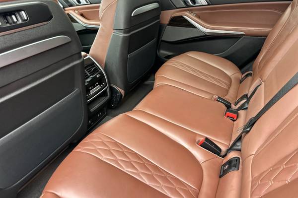 Connected Package Pro., 10 Speakers., AM/FM Stereo., Hi-Fi Sound System., Radio data system., SiriusXM Satellite Radio., Air Conditioning., Automatic temperature control., Front dual zone A/C., Rear air conditioning., Rear dual zone A/C., Rear window defroster., Head restraints memory., Heads-Up Display., Memory seat., Power driver seat., Power steering., Power windows., Remote keyless entry., Steering wheel memory., Adaptive suspension., Auto-leveling suspension., Speed-sensing steering., Traction control., 4-Wheel Disc Brakes., ABS brakes., Dual front impact airbags., Front anti-roll bar., Knee airbag., Low tire pressure warning., Occupant sensing airbag., Overhead airbag., Rear anti-roll bar., Power moonroof., Brake assist., Electronic Stability Control., Exterior Parking Camera Rear., Auto High-beam Headlights., Delay-off headlights., Fully automatic headlights., Panic alarm., Security system., Speed control., Auto-dimming door mirrors., Bumpers: body-color., Heated door mirrors., Power door mirrors., Spoiler., Turn signal indicator mirrors., Apple CarPlay Compatibility., Auto tilt-away steering wheel., Auto-dimming Rear-View mirror., BMW Assist eCall., BMW TeleServices., Compass., ConnectedDrive Services., Driver door bin., Driver vanity mirror., Front reading lights., Garage door transmitter., Genuine wood console insert., Genuine wood dashboard insert., Heated Multi-Contour Seats., Heated steering wheel., Illuminated entry., Leather steering wheel., Live Cockpit Pro., Outside temperature display., Passenger vanity mirror., Personal eSIM 5G., Rear reading lights., Rear seat center armrest., Sport steering wheel., Tachometer., Telescoping steering wheel., Tilt steering wheel., Trip computer., Wireless Charging Device., 3rd row seats: split-bench., Front Bucket Seats., Front Center Armrest., Heated front seats., Power Front Seats., Power passenger seat., Reclining 3rd row seat., Sensafin Upholstery., Split folding rear seat., Passenger door bin., Alloy wheels., Rain sensing wipers., Rear window wiper., Speed-Sensitive Wipers., Variably intermittent wipers., 3.64 Axle Ratio.,