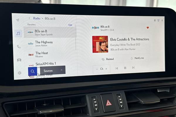 Navigation., Accessory Package (Z1)., Premium Package., Technology Package., 10 Speakers., AM/FM radio: SiriusXM., Radio data system., Air Conditioning., Automatic temperature control., Front dual zone A/C., Rear window defroster., Front Power Seats., Head-Up Display (HUD)., Lexus Memory System., Power driver seat., Power steering., Power windows., Remote keyless entry., Speed-sensing steering., Traction control., 4-Wheel Disc Brakes., ABS brakes., Dual front impact airbags., Front anti-roll bar., Knee airbag., Low tire pressure warning., Occupant sensing airbag., Overhead airbag., Rear anti-roll bar., Rear side impact airbag., SmartAccess Key Card., Power moonroof., Brake assist., Electronic Stability Control., Exterior Parking Camera Rear., Auto High-beam Headlights., Delay-off headlights., Fully automatic headlights., Key Gloves., Panic alarm., Security system., Speed control., Auto-dimming door mirrors., Bumpers: body-color., Heated door mirrors., Power door mirrors., Turn signal indicator mirrors., Auto-dimming Rear-View mirror., Carpet Trunk Mat., Compass., Dashcam., Driver door bin., Driver vanity mirror., Front reading lights., Illuminated entry., Leather Shift Knob., Leather steering wheel., Outside temperature display., Overhead console., Parking Support Alert/Brake., Passenger vanity mirror., Rear reading lights., Rear seat center armrest., Tachometer., Telescoping steering wheel., Tilt steering wheel., Trip computer., Wireless Charger., Front Bucket Seats., Front Center Armrest., Heated & Ventilated Seats., Perforated NuLuxe Seat Trim., Power passenger seat., Cargo Net., Passenger door bin., Alloy wheels., Wheel Locks., Rain Sensing Wipers., Variably intermittent wipers., Windshield De-Icer., Wireless Phone Charger., SmartAccess Card Key., Intelligent Assistant.,