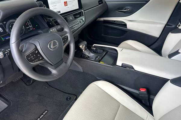 Accessories F FT 18-in Alloy Wheel F PJ Premium Paint F PM Premium Package: Power-Folding Outer Mirrors with Memory, Heated and Ventilated Front Seats with Driver's Seat Memory, Leather Heated Steering Wheel with Memory, Wireless Phone Charger, Intuitive Parking Assist F TP Technology Package: Head-Up Display, SmartAccess Card Key, Lexus Interface with 12.3-in Touchscreen Display. Drive Connect with Cloud Navigation, Intelligent Assistant, and Destination Assist - 3-Year Trial. 4G Network Dependent. F XE Wood Trim P V1 Dash Camera ES 300h Mechanical & Performance 2.5L In-Line 4-Cyl Hybrid Engine with 215 Total System HP Continuously Variable Transmission Front-Wheel Drive Exterior & Interior 17-in Alloy Wheels Bi-LED Headlamps & LED Taillamps Power Moonroof NuLuxe(TM)-Trimmed Power Front Seats Dual-Zone Climate Control Safety / Advanced Technologies Lexus Safety System 2.5 Connected Technologies Lexus Interface with 8-in Touchscreen Display Connected Services Capable. 4G Network Dependent. See Lexus.com for Details. SiriusXM(R) 3-Month Trial Subscription Wireless Apple CarPlay(R) Integration Wireless Android Auto(TM) Capability, ES 300h, 4D Sedan, 2.5L I4 DOHC 16V VVT, eCVT, FWD, Iridium, Macadamia Artificial Leather.