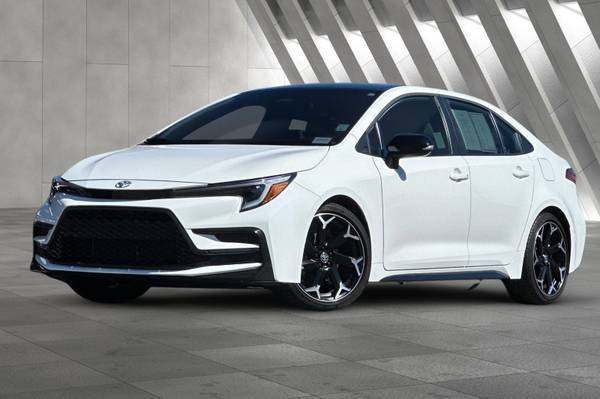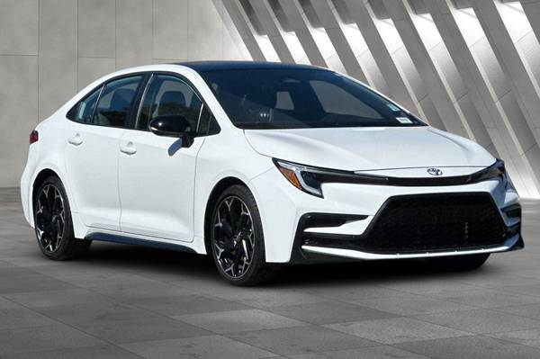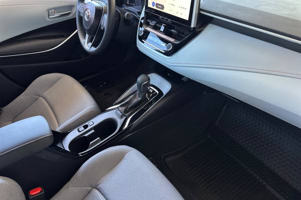 Accessories F CP Convenience Package - Blind Spot Monitor w/Rear Cross-Traffic Alert F FE 50 State Emissions F FX FX Package F TX Black Roof MECHANICAL & PERFORMANCE 2.0L 4-cyl Dual VVT-i, Continuously Variable Trans (CVT) Sport Suspension w/Lowering Springs Sport Drive Mode SAFETY & CONVENIENCE Toyota Safety Sense 3.0 w/Pre-Collision Backup Camera Star Safety System Smart Key System with Push Button Start Connected Services Capable. 4G network Dependent. See Toyota.com for Details. EXTERIOR 18-in. Satin Black-Finished Alloy Wheels w/Machined Accents Sport Mesh Black Front Grille Automatic LED Headlights w/Accent & DRL Enhanced FX Rear Spoiler Blackout Badging Black Mirror Caps Sport Rocker Trim Single Exhaust w/Dual Chrome Tips INTERIOR 10.5-in. Toyota Audio Multimedia w/ 6-Speakers, Wireless Apple CarPlay and Android Auto Compatibility SiriusXM w/3-Month Trial 7-in. Digital Gauge Cluster Wireless Charger Automatic Climate Control Sport Fabric-Trimmed Seats w/ Orange Stitching Leather-Wrapped Steering Wheel, Corolla FX, 4D Sedan, 2.0L I4 DOHC 16V, CVT, FWD, Ice Cap/Midnight Black Metallic, Moonstone Cloth.