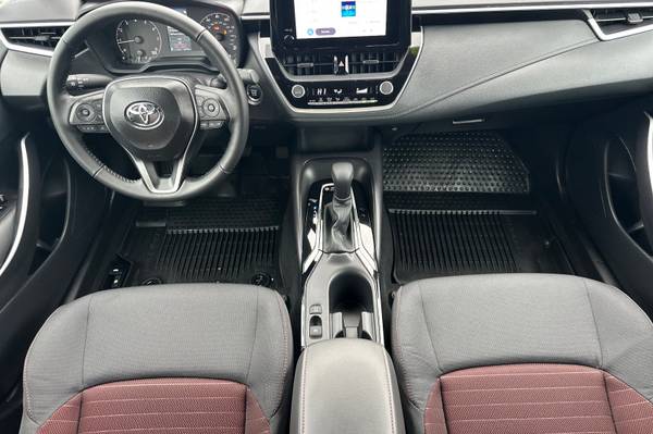 Accessories F FE 50 State Emissions P WL Alloy Wheel Locks MECHANICAL & PERFORMANCE 2.0L 4-cyl Dual VVT-i, Continuously Variable Trans (CVT) Sport Suspension Sport Drive Mode SAFETY & CONVENIENCE Toyota Safety Sense 3.0 w/Pre-Collision Backup Camera Star Safety System Smart Key System with Push Button Start Connected Services Capable. 4G Network Dependent. See Toyota.com for Details. EXTERIOR 18-in. Graphite-Colored Alloy Wheels Sport Mesh Black Front Grille Automatic LED Headlights w/Accent & DRL Color-Keyed Rear Spoiler Sport Rocker Trim Single Exhaust w/Dual Chrome Tips INTERIOR 8-in. Toyota Audio Multimedia w/ 6-Speakers, Wireless Apple CarPlay and Android Auto Compatibility SiriusXM w/3-Month Trial Automatic Climate Control Sport Fabric-Trimmed Seats Leather-Wrapped Steering Wheel, Corolla SE, 4D Sedan, 2.0L I4 DOHC 16V, CVT, FWD, Classic Silver Metallic, Black/Red w/Fabric Seat Trim.