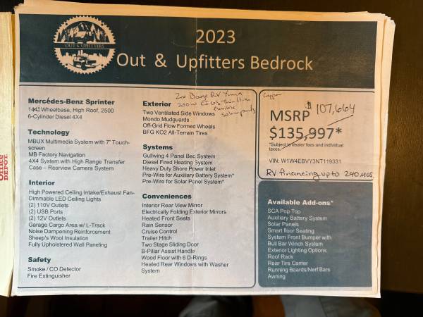 2022 Mercedes-Benz 144 wheelbase, High Roof, 2500 6-cylinder 4×4