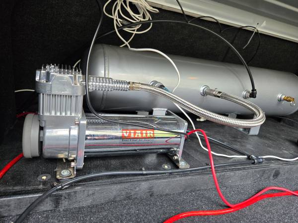 Aftermarket air ride suspension on all 4 corners with controls inside to raise and lower for ride control.