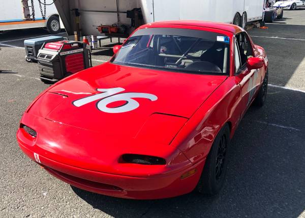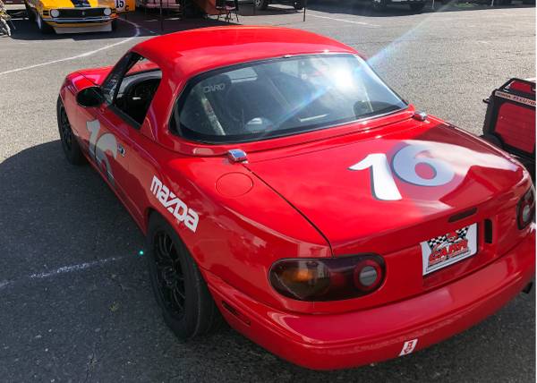 1991 Spec Miata (NA) with SCCA and SVRA Log Books and race history. This is a race car to be sold with a Bill of Sale; not street legal. Raced from April 2006 (first year of National Spec Miata Class) to June 2020. Consistent top 10 with several Top 5’s at Laguna Seca Raceway. Runoffs in 2014. Restoration work in 2021 with new paint. 2023 work incl. new rear main bearing, oil pan gasket, head gasket, water pump, clutch, and fire suppression system. Not raced since engine work completed. New battery 2025. Three sets of racing wheels and spare parts. Super clean. Eligible for current SCCA club racing or vintage racing (CSRG, VARA, SVRA, etc). $14,500.