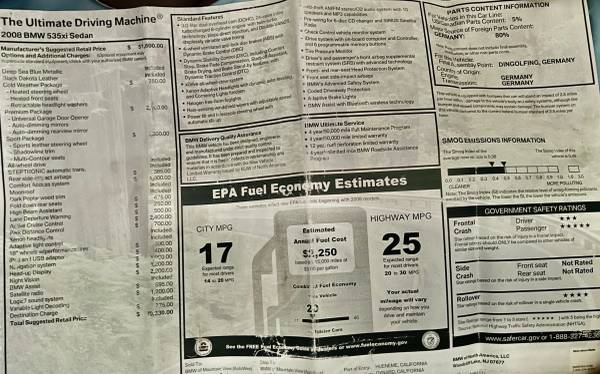 Selling my 2008 BMW 535xi in Deep Sea Blue Metallic with black Dakota leather interior. The car has BMW’s xDrive all-wheel drive and the twin-turbo 6-cylinder engine, so it’s smooth, quick, and great in any weather.