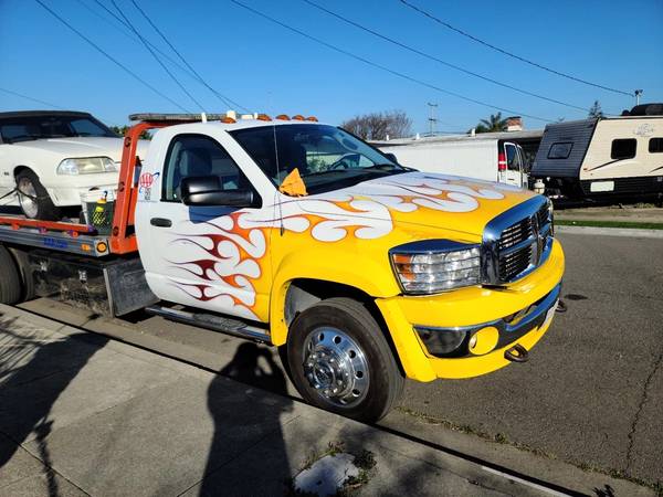 Your looking at a 2008 Dodge Ram 5500 slt Rollback Flatbed wheellift towtruck its fully loaded with every option possible back up camera front foward camera all upgraded led lights and light bar alcoa wheels has nice boxes heavy duty winch cable also has the wheellift to tow a second car will include all chains and straps truck is ready too go too work and make you money now just had it fully serviced oil change fuel filter and air filter very dependable could drive anywhere had the truck for years took it too many shows did personal tows to car shows was painted over 10 years ago still clean but clear coat is peeling off in some areas for more info feel free show contact info
