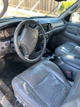2004 Toyota Sequoia Limited 4X4 223K miles, clean title, recent smog. 8 Cylinder engine. Silver color, leather interior, sunroof, power windows and seats. New battery, recent wheel alignment, recently replaced catalytic, tires are 3 years old. Removable 3rd row tumble seats. 2 pairs of keys with remotes. Have maintenance records from past several years.