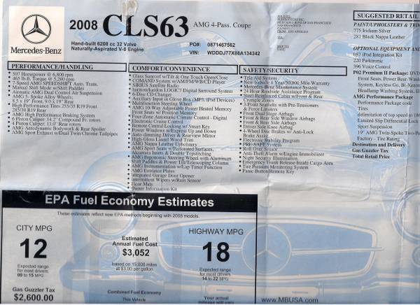 AMG PERFORMANCE PKG, 7 SPEED AMG SPEEDSHIFT AUTO TRANSMISSION W/ SHIFT MODE W/ PADDLES, AIRMATIC AMG DUAL CONTROL AIR SUSPENSION, AMG 5 SPOKE ALLOY WHEELS (8.5 X 19 FRONT) (9.0 X 19 REAR) w/ STERLING FINISH, SPORTS SUSPENSION. PARKTRONIC, BI-XENON HEADLIGHTS, HEATED, COOLED & VENTILATED FRONT SEATS, ELECTRONIC TRUNK CLOSER, ANTI THEFT ALARM W/ENGINE DEMOBILIZER, 3 POINT SEATBELTS with PRE-TENSIONERS & FORCE LIMITERS, STEEL-REINFORCED CABIN w/FRONT & REAR CRUMBLE ZONES, FRONT & REAR AIRBAGS, NAVIGATION, IPOD INTEGRATION, PREMIUM SOUND SYSTEM, SUB-WOOFER BOX IN TRUNK. MULTI-FUNCTION STEERING WHEEL