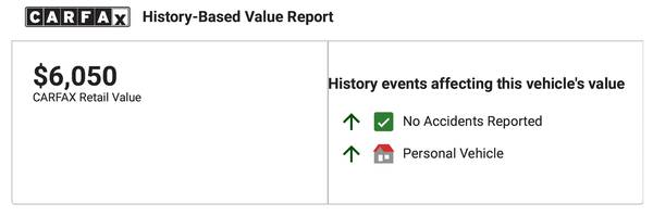 The Kelley Blue Book (KBB) value for this car, based on its condition and mileage, ranges from $3,100 to $5,500, and the CARFAX retail value is $6,000. I’ve priced it fairly at $4,000, and that price is firm. The car is in excellent condition, I’m not in a rush to sell, and I have complete maintenance records (see below). I’ll sell it to the first person who shows up with $4,000 cash.