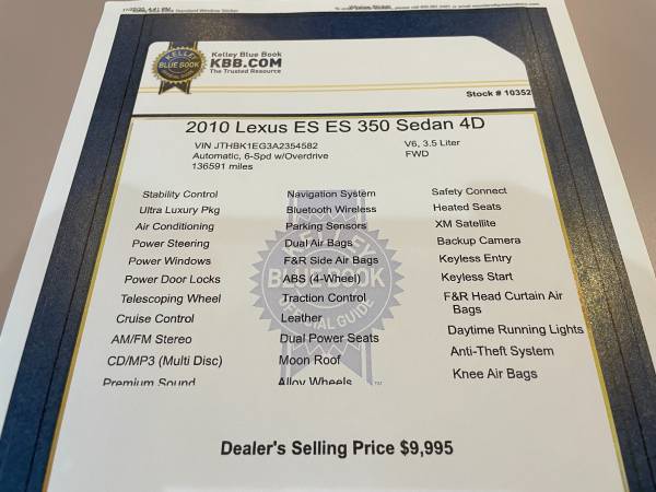 Stock#: 10352 -- VIN: JTHBK1EG3A2354582 - 9,995 miles --Price: $9,995