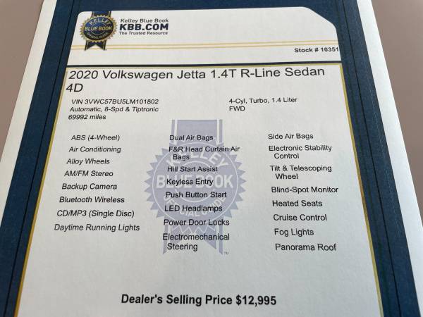 Stock#: 10351 -- VIN: 3VWC57BU5LM101802 - 69,992 miles --Price: $12,995