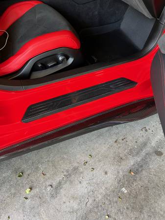 It also has full front PPF and some PPF down the sides. Windshield PPF/Armor. Side boomerangs done in torch red — makes the car look so much exotic and the lines flow nicer (just look at the pics). Titanium cat back exhaust (stock cats) that sounds GLORIOUS, a Corsa Performance airbox and the car is lowered on stock springs just a tad (with Paragon lowering collars for the front due to front lift). The ride was not degraded at all -- I'm super sensitive to lowered cars and ride quality -- this car feels like stock. It also has carbon fiber engine covers, a carbon fiber Speedway Composites engine cross brace, torch red engine builder plate, and carbon fiber door sills, etc. It also has Paragon front and side radiator guards. All of the basic, key mods you'd want, without the stuff / headaches you don't. 100% smog legal.