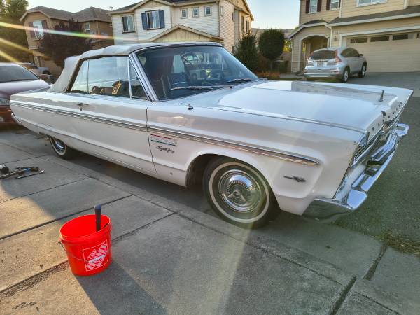 1965 Plymouth Fury Comando Convertible;;;looks similar to Impala from the side;;;;.Cruise as is 100% stock...Car has 383 motor AND 727 Torqueflite auto trans....car is beautiful low mile car.. all original clean interior...can cruise as is stock cruiser..or motify to your likeing...can make both hot rod or lowrider...Tires are like new...car was super clean show car inside and out...Rare car back in 1965 the indy 500 pace car was exact copy of my car...only made a few like this...car was hit in parking lot now has dent front grille and behind passenger door...look at pics see condition....please feel free to call me show contact info