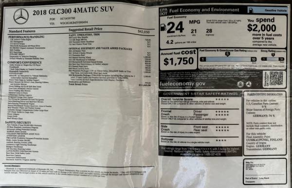 We are offering a meticulously maintained 2018 Mercedes-Benz GLC 300 4MATIC in the stunning Brilliant Blue Metallic color. This luxury SUV is in excellent condition and has been cared for with attention to every detail.