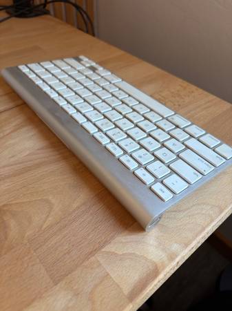 If you're reading this it's still available. Apple wireless keyboard. Older style which I actually prefer over the newer ones. A few years old but still works great. Uses AA batteries. Note there is...