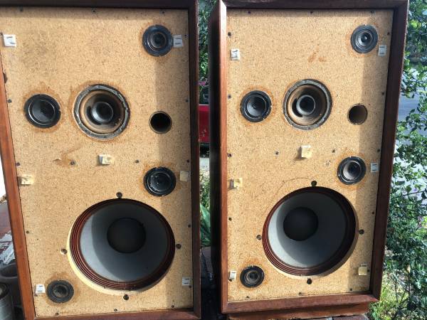 These are vintage speakers from Rectilinear manufactured circa in the early 70's. The design goal of the Rectilinear model III was to create a reference standard with special emphasis on the widest possible dispersion of sound and unimpaired performance in large rooms. It is a 4 way design with 12" woofers manufactured by Jensen ("Flex-Air"), 5" whizzer cone midrangers manufactured by Philips Electronics of the Netherlands, and 2" and 2.5" cone tweeters by Peerless of Denmark.