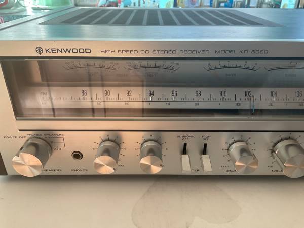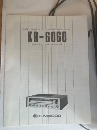 Thank for viewing this Kenwood KR 6060 High Speed DC Stereo Receiver in nearly perfect working condition. This beautiful machine has been well taken care of--no scratches or any cosmetic damage. It has been tested and the only issue is sometimes the light flickers when you first turn it on but then is fine shortly thereafter. The original manual comes with it. You may test it before deciding to buy.