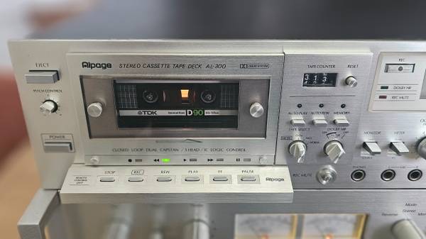 A super rare Alpine Alpage AL300 cassette deck that sounds excellent and has a lot of features that many high end decks don't have from that era. Works good, rewind, fast forward and playback all good. It was serviced by the precious owner a years ago and I did the belts about 4 years ago so it will need service some time in the future. Sold as is and you are more than welcome to come by and check it out this awesome 3 Head cassette deck. Price is $600.