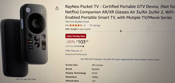 Brand new / mint condition, opened for testing. 1. RayNeo air 2s AR glasses 2. pocket TV (...