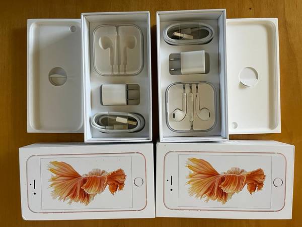Brand New, Never Used. Just the box and accessories, no phone. 2 iPhone 6s (rose-gold) original box, with charger and lighting cable. The one without earbud (lighting connector) is $20. The one with...