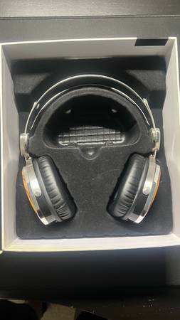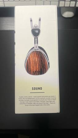 LSTN Troubadour Sound & Purpose Zebra Real wood over-ear headphones with microphone. Hardly used and in excellent condition. Adjustable. Comes with original box, carrying case, removable cables with in-line mic, and manual.
