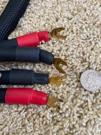 Selling a pair of amazing Monster Cable M Sigma2 speaker cables. This is an 8’ pair and are in amazing condition with no fray on the cable housings. The M Sigma2 speaker cables are arguably the “original” garden hose of speaker cables and arguably started the high end speaker cable industry. These cables will surely elevate your listening experience. As you can see, they come with a carrying case. I bought these awhile ago, but never got to installing them. Sorry to let them go.