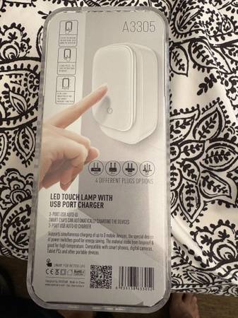Brand new in factory sealed box / gift case. 3 ports usb charger with international plugs. Also touch lamp. Please see pics for description. $15 firm pick up is from Hercules