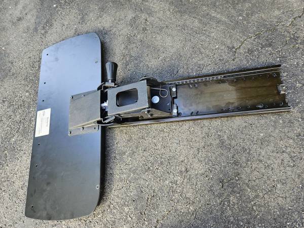 In good but used condition. Tray and track both work perfectly. Track is 22". https://shop.workriteergo.com/products/standard-adjustable-keyboard-platform