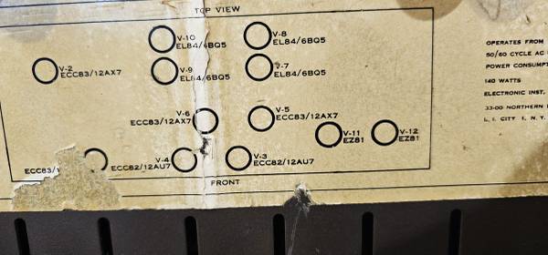 Valve complement: 4 x ECC83, 2 x ECC82, 2 x EZ81, 4 x EL84