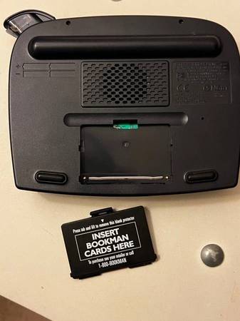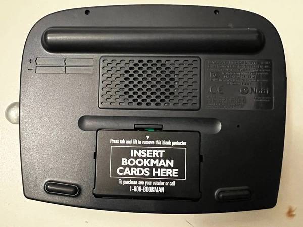 Desktop design with a large 8-line screen displaying over 120,000 words and speaking full definitions; expandable book card slot, grammar guide, SAT word list, LEARNables, and games