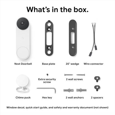 --The wired Nest Doorbell is designed to replace a wired doorbell and requires a compatible chime and transformer (both sold separately); you may need to replace existing hardware
