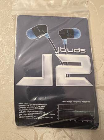 JLab JBuds J2 Premium Hi-Fi Noise-Isolating Earbuds Black, new open box, never been used, with 3 sets rubber sittings and instructions, high quality sound.