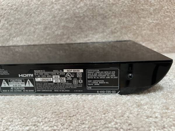 Sony 3D Blu-ray Disc DVD SACD CD Wi-Fi Universal Player with Remote, Model: BDP-BX59, plays 3D Blu-ray disc, regular DVD, SACD (Super Audio CD), CD, MPEG4, etc. and also has Wi-Fi internet connections, mid-level player with HDMI, RCA and Digital outputs, very lightly used, in excellent condition, comes with remote. Great for movie lovers as well as audiophiles. This is a mid-level player, not cheap model. No lowball offer please.