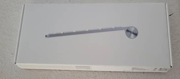 Apple keyboard. Never used. Works when last tried. Bluetooth and batteries. Pickup only. Contact via text message only. Cash only. No bill over $20 please.