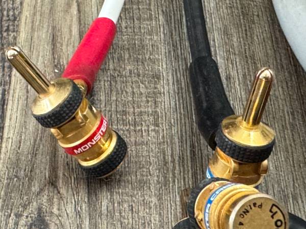 Monster M1 Sonic Reference Premium speaker cables with Microfiber 15 ft pair terminated with patented locking Banana plugs. The cables are in great shape for all your Audiophile stereo listening and home theater. Please check pictures and feel free to ask any questions you may have. Hoping $399 for the pair.