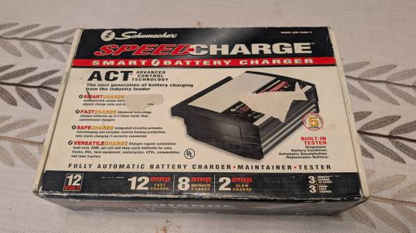 Excellent condition. SCHUMACHER SPEED BATTERY CHARGER 12V #SC-1200A Has multiple selectable charge rates (2/8/12)A User selectable battery type. Charge / Maintain / Trickle
