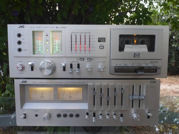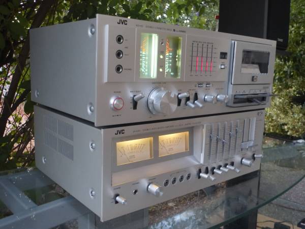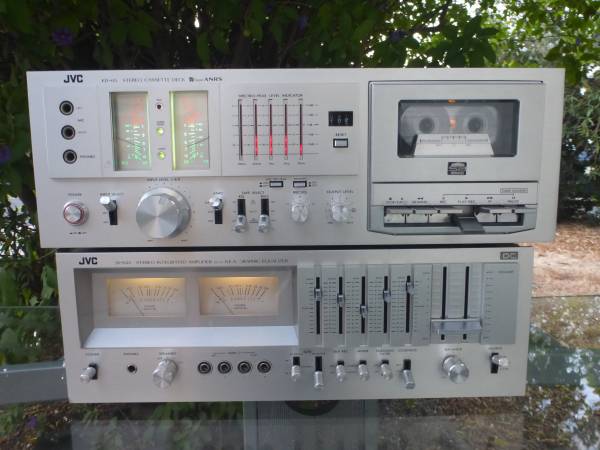 Gorgeous Vintage JVC JA S44 Stereo Integrated Amplifier with SEA Equalizer and JVC KD 65 Super ANRS Stereo Cassette Tape Deck from 70s. Both units are in Excellent working and very good cosmetic condition (a small dent on amplifier left lower corner, other than that it's in great shape), looks, works and sound Great.