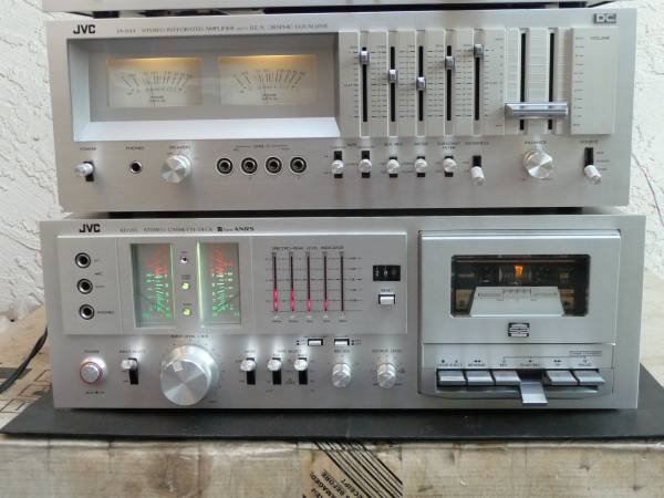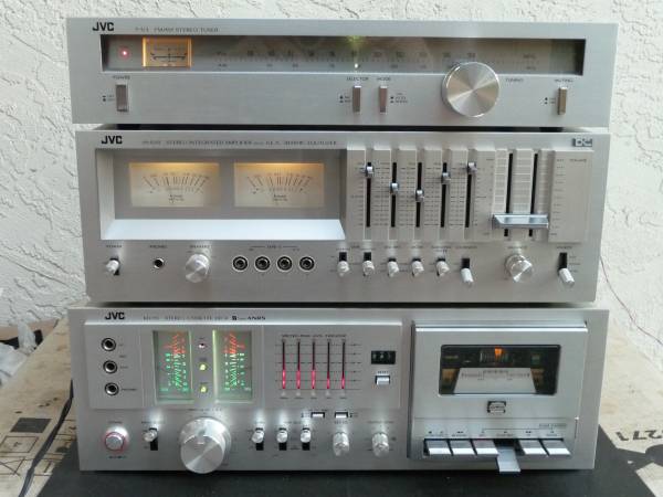 Gorgeous Vintage JVC JA S44 Stereo Integrated Amplifier with SEA Equalizer, JVC KD 65 Super ANRS Stereo Cassette Tape Deck and JVC T-V3 AM/FM stereo tuner from 70s. All 3 units are in Excellent working and very good cosmetic condition (a small dent on amplifier left lower corner, other than that it's in great shape), looks, works and sound Great.