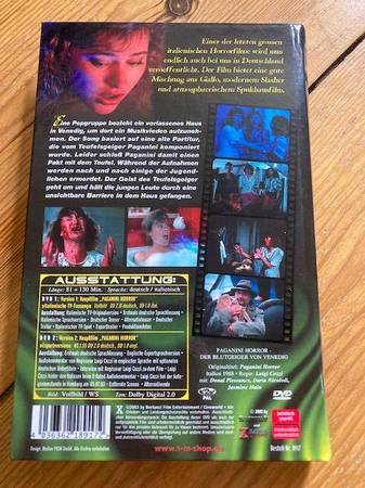 This is for super collectors of '80s craziness. A German 2-disc DVD set of the 1989 movie Paganini Horror, this 2-disc set containing an uncut version of the film. This website breaks it down, lists the contents, (not in English but google translate link)