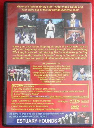 This DVD contains two short, very low-budget but well-liked comedy films. The main feature (22 mins. long) is a satire of kung fu movies, but note that it is NOT un-PC, is made my someone who loved those '70s flicks rather than just out to point and laugh at them. Winner of a few underground film festival awards. (Most everyone in it was staff from the UC Theatre way back when, three having been in midnight Rocky Horror live cast performances.)