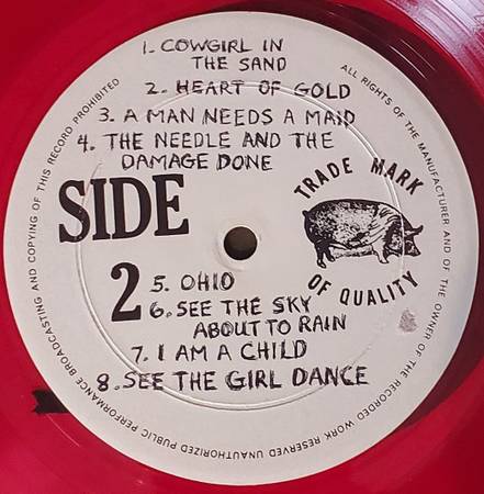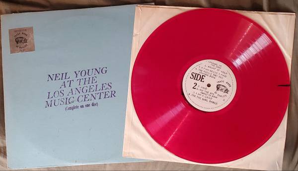 Neil Young 'Live at the Los Angeles Music Center' classic rare boot on famous TMOQ label, on red vinyl. Excellent quality. $200 find all of my listings for my vinyl records for sale as they are...