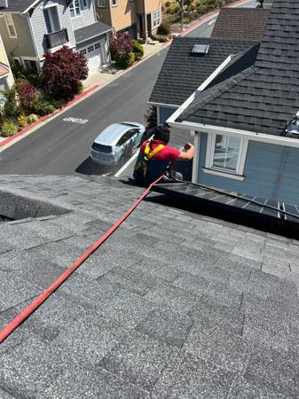 I offered my services in the Bay Area if you need someone to clean your gutters here I am feel free to call or Tex 4155788894 but don’t call Sunday it’s my day off we have our ladder to reach the roof and safe tools doesn’t matter how tall is the house we have a different size of rope more then 200’ 100’ 120’ 80’ 50’ feet and harness to work safe, our goal are work safe, fast, easy, and comfortable, and the most important it’s customer happy here I left a few pictures about the gutters we cleaned.