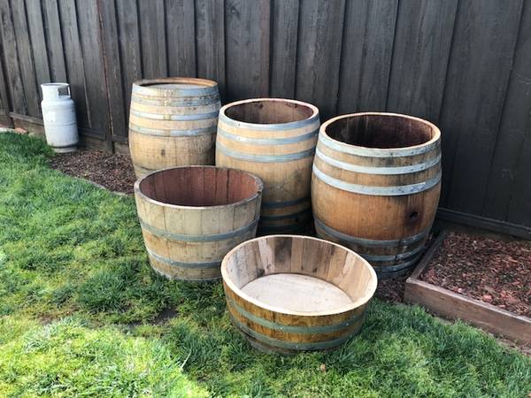 1/2 Wine Barrel (approx. 18" high) -$54/ea. Also have half barrel planters( approx 18" high) at $54/ea - delivery an option
