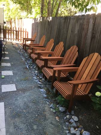 2 x 6 HD Frame and full 1x cross sections- SS hardware- an investment in your home. $239/ea. Adirondack Chairs features #400 sanded arms and rust-resistant/zinc-plated screws. Dimensions: approx 36" x 29" x 34". Custom made right here in East Bay.
