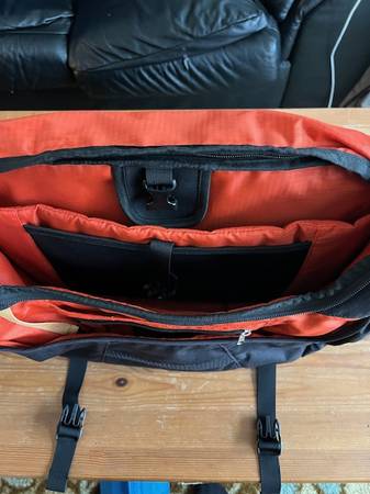 Hi - I'm selling an REI Quantum laptop/messenger bag. The bag is in new condition and was a gift that was never used. The bag has many compartments, can hold a big laptop, and has a padded back and bottom.