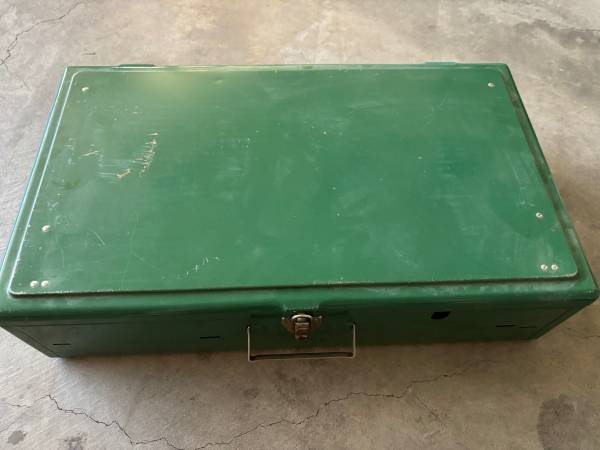 ✅ Original green metal case with latch and handle