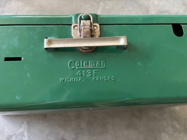 Classic Coleman Model 413F two-burner gas stove, made in the USA – perfect for collectors, campers, or outdoor cooking lovers.
