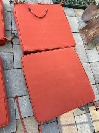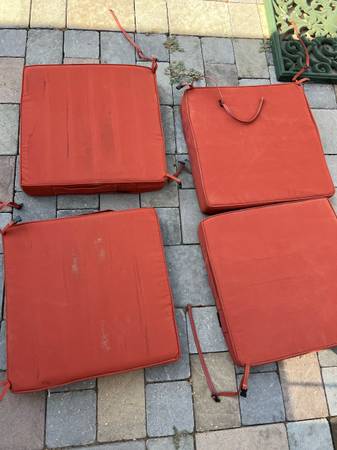 4 Piece Outdoor Patio Furniture Cushions in Res Located in concord Very good condition No damages Covers not removable Measures 19” x 19” $40 for all 4 pieces or best offer