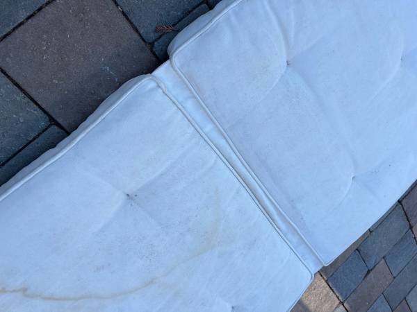 1 Piece Outdoor Patio Furniture Cushions in White by Pottery Barn Located in concord Very good condition No damages Covers not removable Measures 26” x 85” $30 or best offer